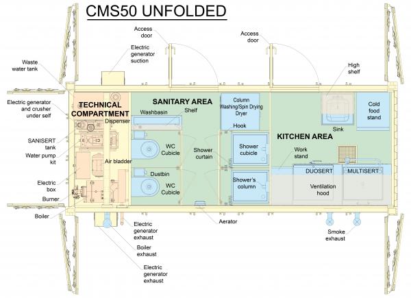 The new CMS 50 container is designed to satisfy the support of 30 to 50 people in a compact and fully sheltered environment.