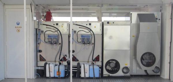 The unit is fully autonomous with an in-board diesel power generator, low speed 1500 rpm, in continuous service.