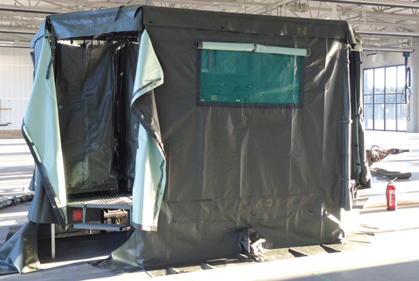 Four foldable walkways as well as four corner doors and stairs make a sheltered area of 13 m², 70 cm above the ground, preventing people from wind, sand, dust, snow, rain etc…