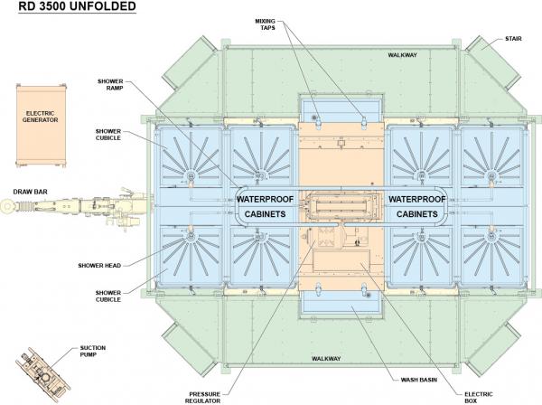 LoginThe new shower trailer RD 3500 is designed to accommodate approximately 150 people in two hours in a compact and entirely sheltered environment.