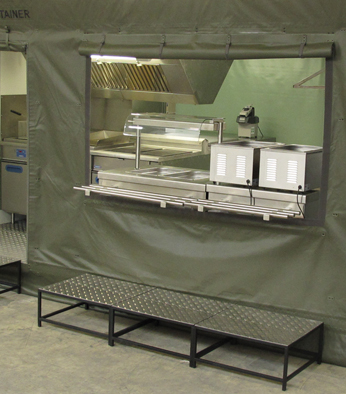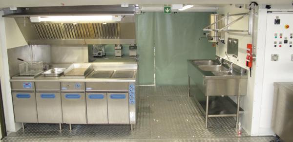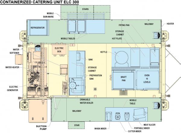 The ELC 300 is designed to ensure fast and efficient catering for 150 to 300 people according to its equipment. This kitchen unit includes preparation, cooking and serving of the meals. It is entirely autonomous with its own power production.