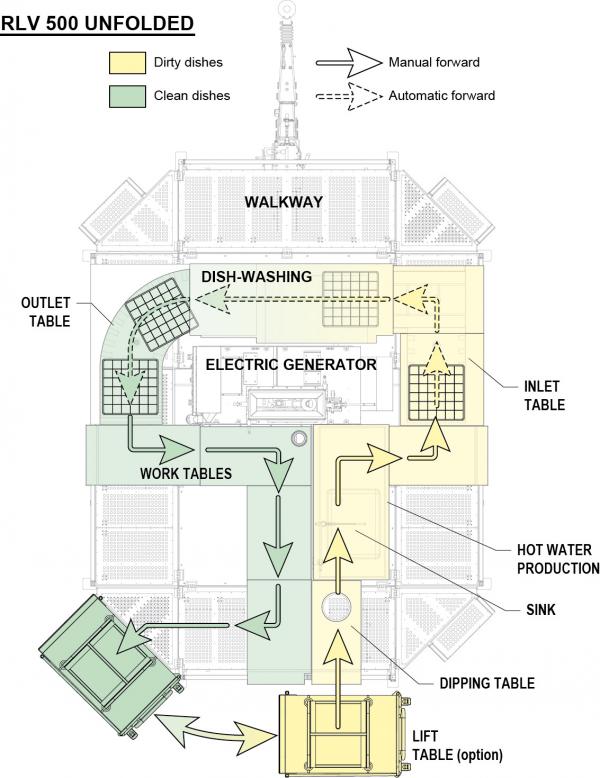 LoginThe trailer RLV 500 is designed to ensure fast and efficient dish and food plates washing for 150 to 500 people in the field.