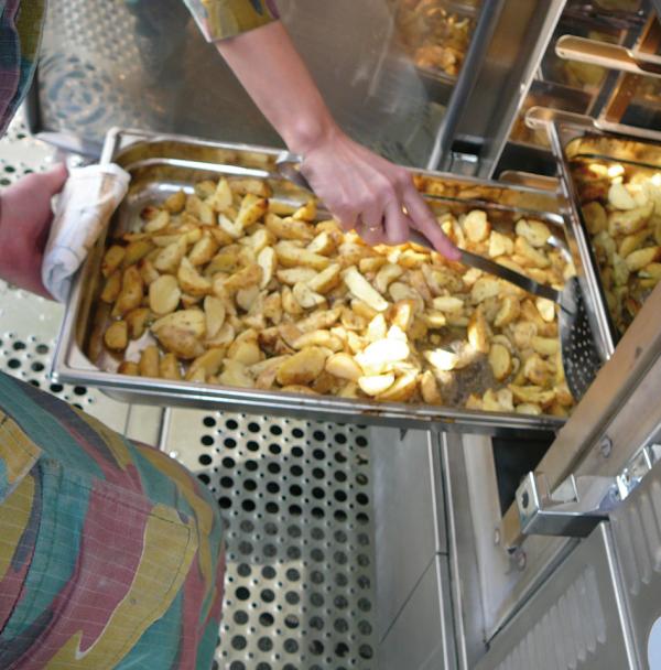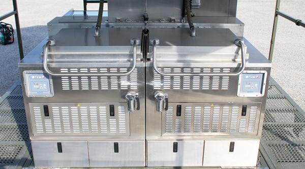 The standard version is very ergonomic and has two large MultiSert multifunction kettles, a big CombiSert combined oven, a DuoSert fan assisted oven with hot plate on top as well as several drawers and worktables.