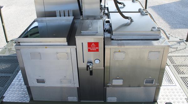 This unit includes four “new generation” stainless steel modules (several combinations on demand) installed onto an off road trailer which can be towed by tactical prime mover and air lifted.