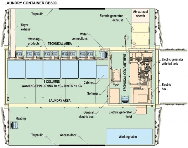 LoginThe containerized laundry unit CB 500 is designed to support 150 to 500 people in the field.